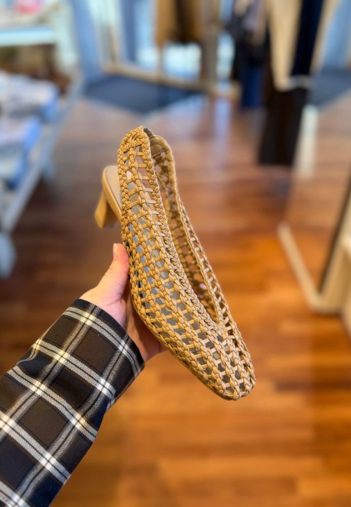En smuk og unik slingback fra Bianca Di i flettet skind, der giver et let og sofistikeret udtryk. Den spidse snude og den feminine hæl skaber en flatterende silhuet, mens slingback-designet giver et luftigt og sommerligt look. Perfekt til både hverdagsbrug og festlige anledninger.
