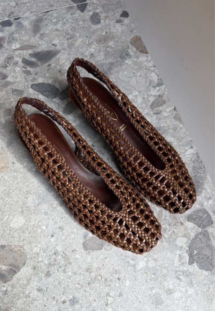 En elegant slingback fra Bianca Di i flettet skind, der giver et let og sofistikeret udtryk. Den spidse snude og den feminine hæl skaber en flatterende silhuet, mens slingback-designet giver et luftigt og sommerligt look. Perfekt til både hverdagsbrug og festlige anledninger.