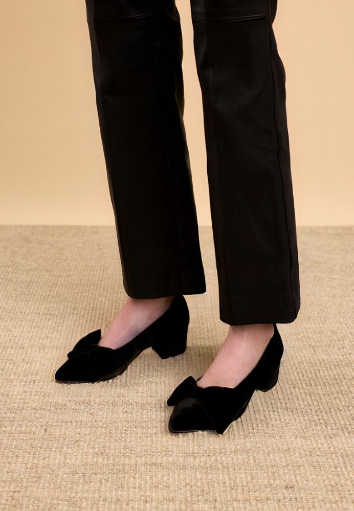 Elegant og komfortabel på samme tid – denne sløjfe-pump fra Angulus er fremstillet i blød velour med en smuk, olivengrøn farve og feminine detaljer. Pumpen har en spids snude, vatteret indersål samt en polstret krave, der sikrer ekstra støtte og komfort gennem hele dagen. Indvendigt er skoen foret med kromfrit, åndbart læder, og den sorte tunitsål kombineret med en FSC-certificeret rågummisål giver et solidt, men fleksibelt fodfæste. Den 5 cm høje blokhæl tilfører elegance uden at gå på kompromis med stabiliteten. Udformet i naturligt skind med en kanvasbaseret glittereffekt, som giver skoen et diskret og eksklusivt skær. Bemærk: modellen er lille i størrelsen på grund af den spidse snude – vi anbefaler at gå en halv til en hel størrelse op. Designet i Danmark og håndlavet med kærlighed i Portugal.