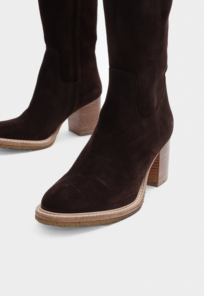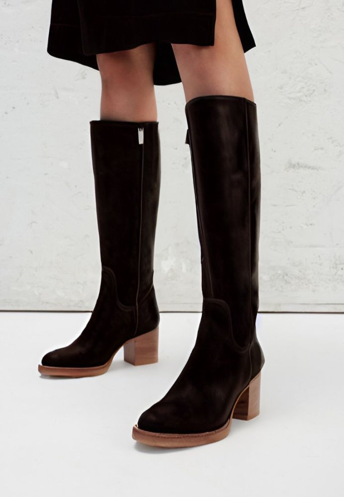 Elegant 70’er-inspireret langskaftet støvlet fra Angulus i blødt, åndbart skind. Støvletten har en mandelformet snude, tætsiddende skaft med lynlåslukning og en 6 cm blokhæl, som giver både højde og komfort. Den er udstyret med en vatteret indersål, skindfoer og en blød rågummisål under forsålen for ekstra komfort og stabilitet. Et præget logo ved hælen fuldender det eksklusive udtryk. Designet i Danmark og håndlavet med kærlighed i Portugal.