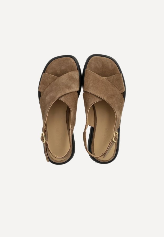 Denne cross-sandal fra Angulus er et enkelt og elegant valg til sommergarderoben. Det krydsede design og den firkantede snude giver sandalen et moderne og stilrent udtryk, som er let at kombinere med både kjoler og bukser. Sandalen er fremstillet i blødt ruskind og har en justerbar ankelrem med elastisk spænde, der sikrer en behagelig og fleksibel pasform. Den polstrede indersål i læder giver god komfort, mens den lette og fleksible gummisål gør sandalen velegnet til brug hele dagen. Et tidløst design med fokus på komfort og kvalitet – perfekt til både hverdag og sommerens mere afslappede anledninger. Designet i Danmark og håndlavet i Portugal.