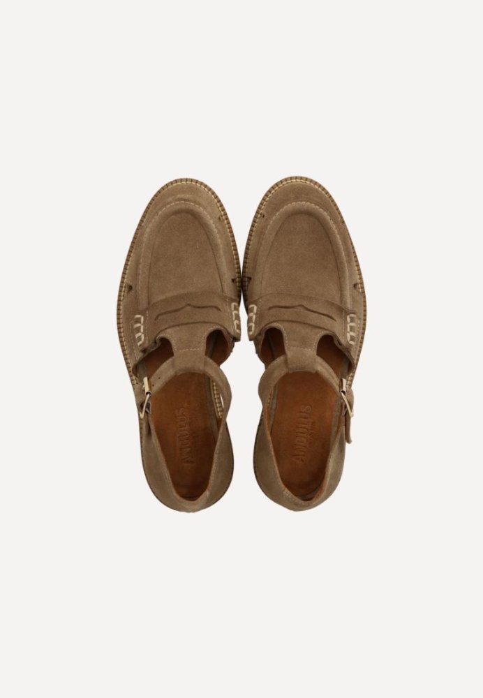 Penny loaferen fra Angulus er en elegant og karakterfuld loafer med dekorative udskæringer og fine stikningsdetaljer. Det klassiske design får et moderne løft med den justerbare rem og gyldne spænde, som giver et sofistikeret udtryk. Skoen har en mandelformet snude, polstret indersål og for i kromfrit ruskind, der sikrer høj komfort hele dagen. Den lette og fleksible ANGULUS-logosål i gummi giver god bevægelsesfrihed og stabilitet. Fremstillet i naturligt og åndbart skind. Designet i Danmark og håndlavet med omhu i Portugal.