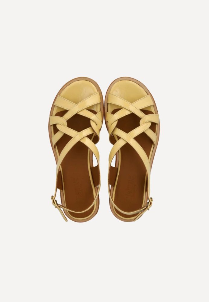 Let sandal i skind med smukke remdetaljer. Sandalen har rund snude, polstret indersål og foring i kromfrit skind samt justerbar ankelrem med guldfarvet spænde. Sandalen er udstyret med en let, blød og fleksibel FSC-certificeret naturcrepe-sål fremstillet af naturgummi. Designet i Danmark og håndlavet med kærlighed i Portugal.