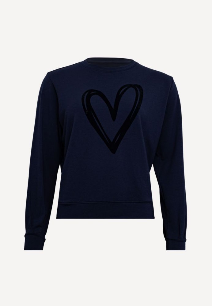 Heart Sweat i Midnight fra Costamani er et afslappet og stilfuldt sweatshirt-design med feminine detaljer og blød komfort ideel til hverdagens mange øjeblikke.