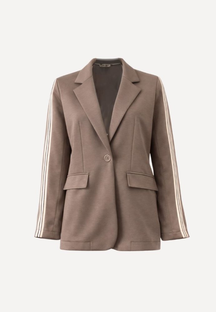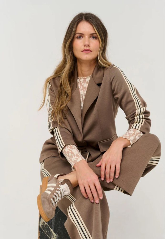 Alba blazer er designet til dig, der ønsker et sofistikeret look med en sporty edge. Den moderne silhuet og diskrete sporty detaljer gør den til et stilfuldt valg, der balancerer mellem klassisk elegance og afslappet coolness. Ideel til både arbejde og weekendstyling.