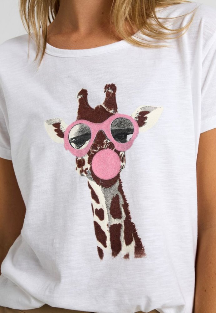 Statement-print møder feminin edge i denne T-shirt med et unikt dyremotiv. Den bløde kvalitet og den afslappede silhuet giver maksimal komfort, mens printet tilfører en fashion-forward vibe. Ideel til at give dit outfit et kreativt og moderne udtryk.