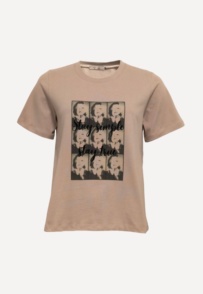 En moderne statement-T-shirt med et grafisk print, der giver et cool og kunstnerisk udtryk. Den klassiske rund hals og den afslappede pasform gør den nem at style til både denim, tailoring og sporty looks. Printet tilfører personlighed og kant, mens den bløde kvalitet sikrer komfort hele dagen. Et effortless piece, der løfter din hverdagsgarderobe.
