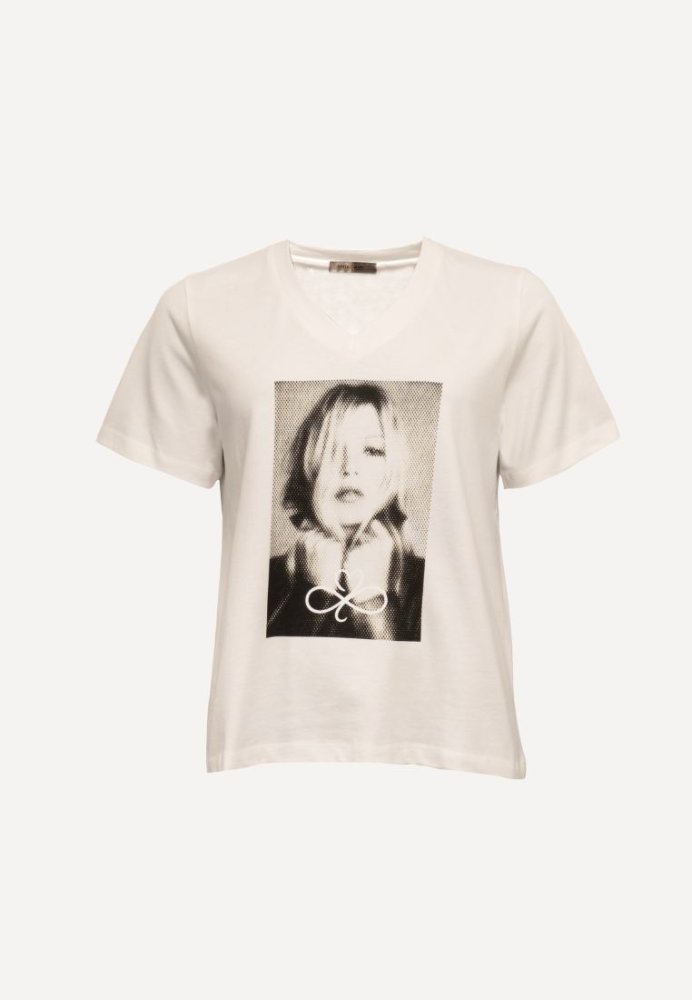 Minimalistisk design med et grafisk twist. Denne T-shirt kombinerer en elegant V-hals med et kunstnerisk print, der tilfører dybde og personlighed. Let at style til både afslappede og mere polerede looks et sikkert valg til en moderne garderobe.