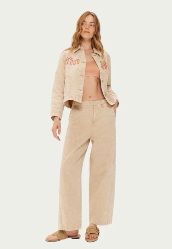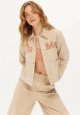 Den bløde kvalitet og den neutrale sandfarve gør den nem at style med både matchende bukser, denim eller over en kjole. En statement-jakke, der balancerer casual cool med et feminint og kreativt udtryk.