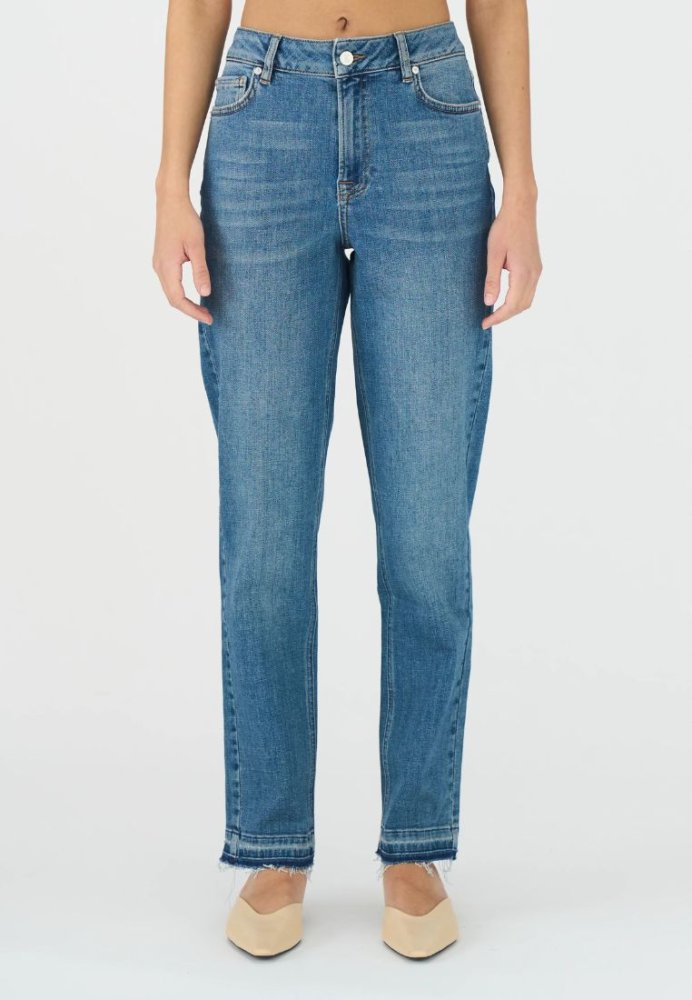 Tonya Cropped Hem Jeans - Denim Blue