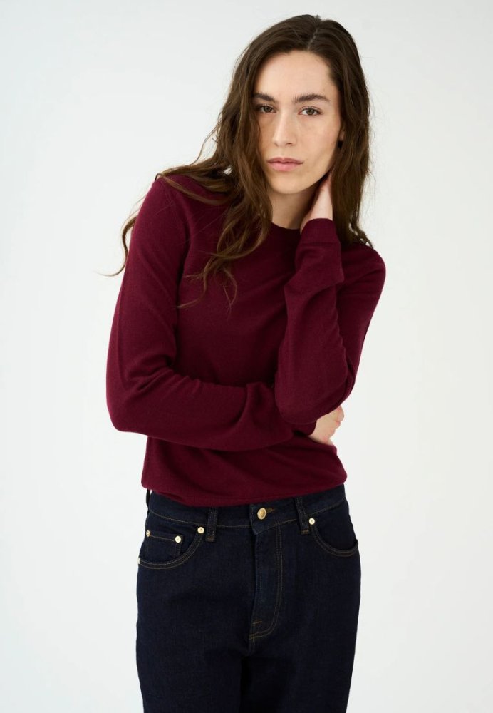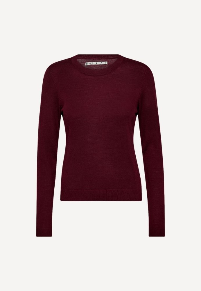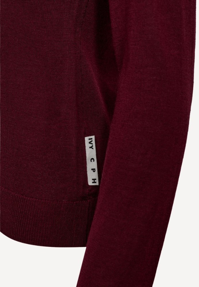 Essex-strikken fra IVY Copenhagen i en dyb burgundy nuance er den perfekte basisstrik til efteråret. Den er fremstillet i 100% merinould og har et minimalistisk design med rund hals og fine ribdetaljer ved ærmer og søm. Den regulære pasform gør den ideel både alene eller som del af et lag-på-lag-look. En klassisk garderobefavorit i en varm og sofistikeret farve.