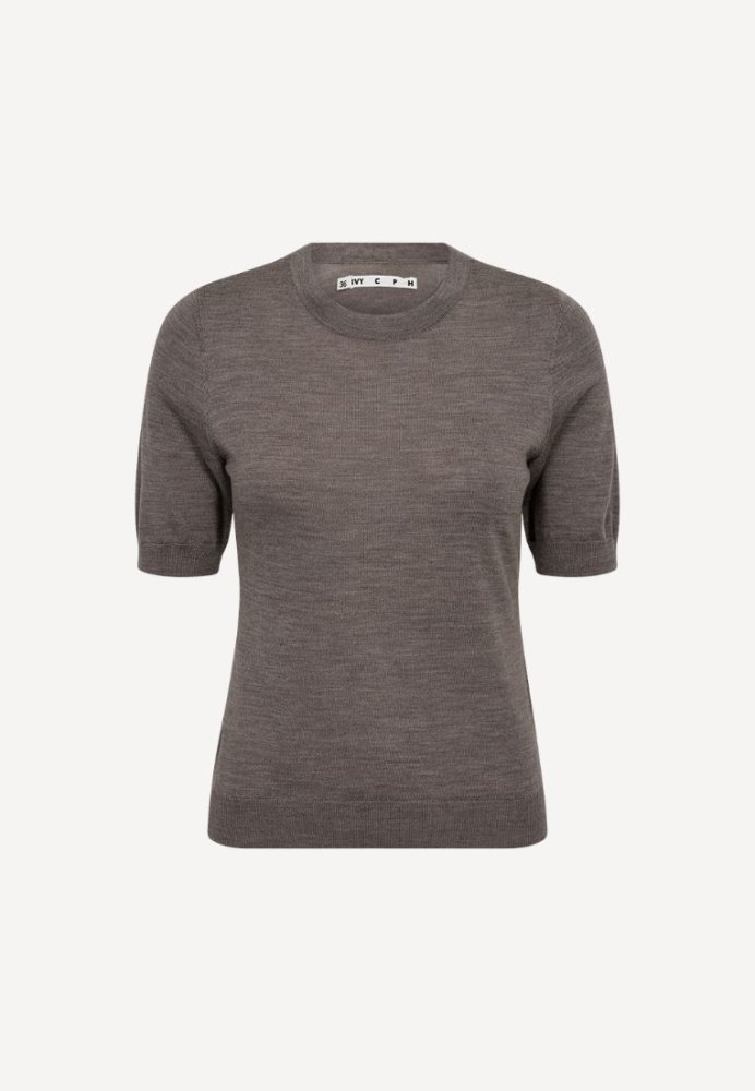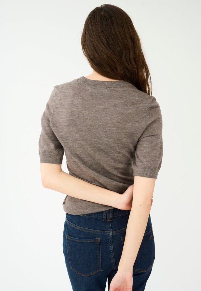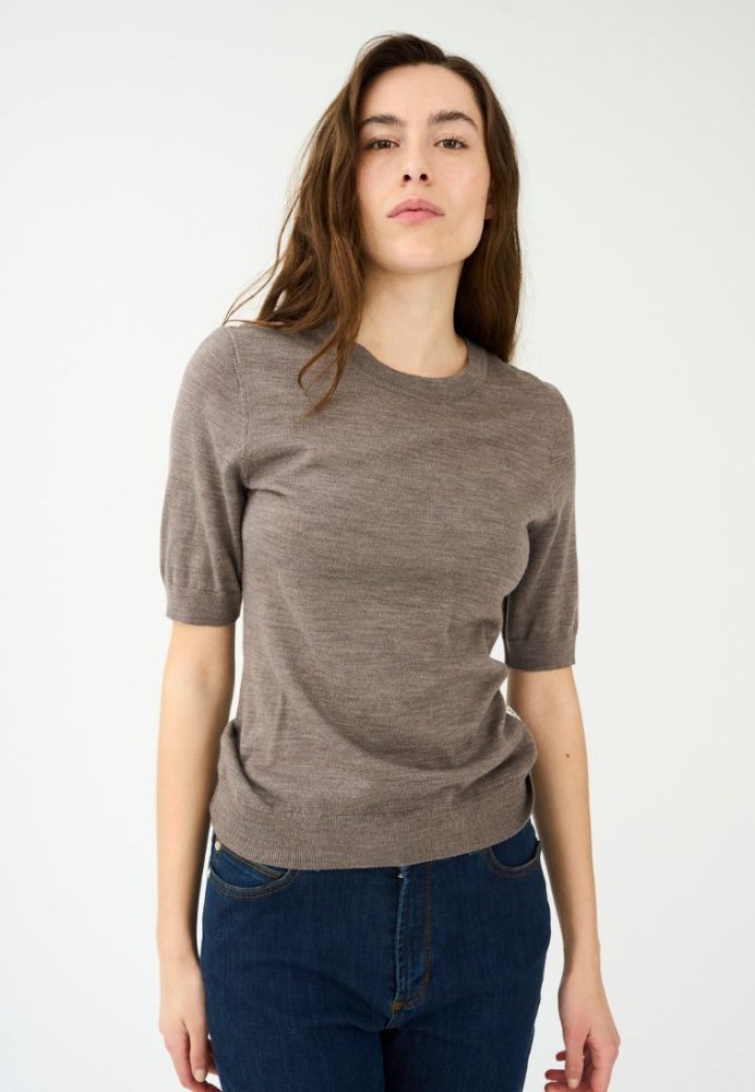 Essex strik m. korte ærmer - Brown Melange