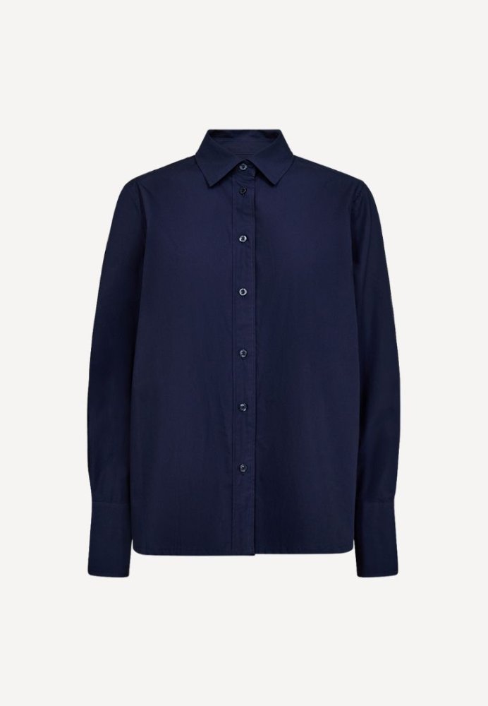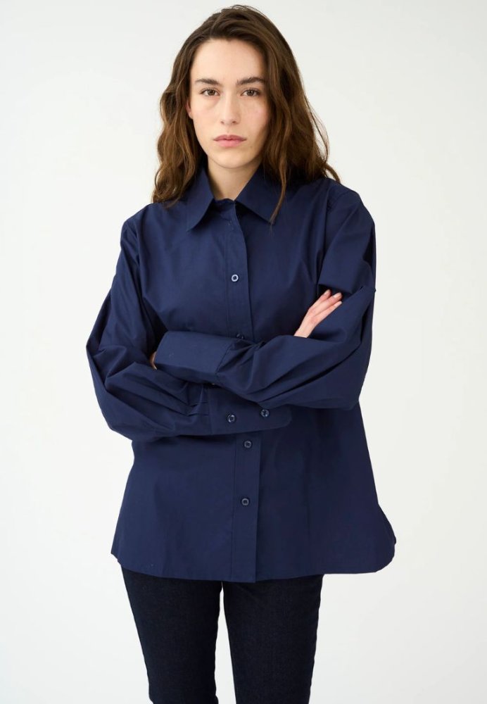 Filippa-skjorten fra IVY Copenhagen er en klassisk og tidløs skjorte lavet i 100% blød bomuld. Den har en enkel og elegant pasform, som gør den ideel til både hverdag og festlige lejligheder. Skjorten er designet i en dyb navy blå farve, der nemt kan styles med både jeans og nederdel. Med sit rene snit og høje kvalitet bliver denne skjorte hurtigt en favorit i garderoben.