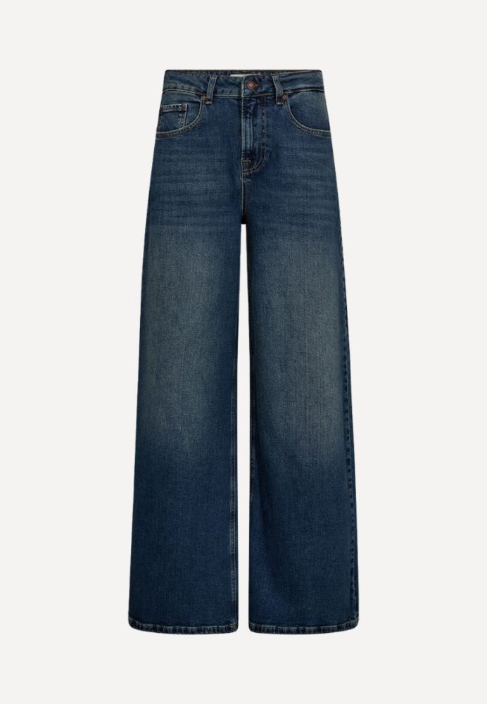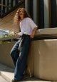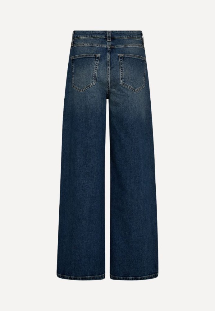 Et par jeans med attitude og en flatterende silhuet. Den vide pasform og lette flare skaber en cool, moderne form, der forlænger benene visuelt. Klassiske denimdetaljer kombineres med et trendy snit, hvilket gør dem til et oplagt valg til både hverdag og weekend. Brug dem med sneakers for et afslappet look eller med hæle for ekstra kant.