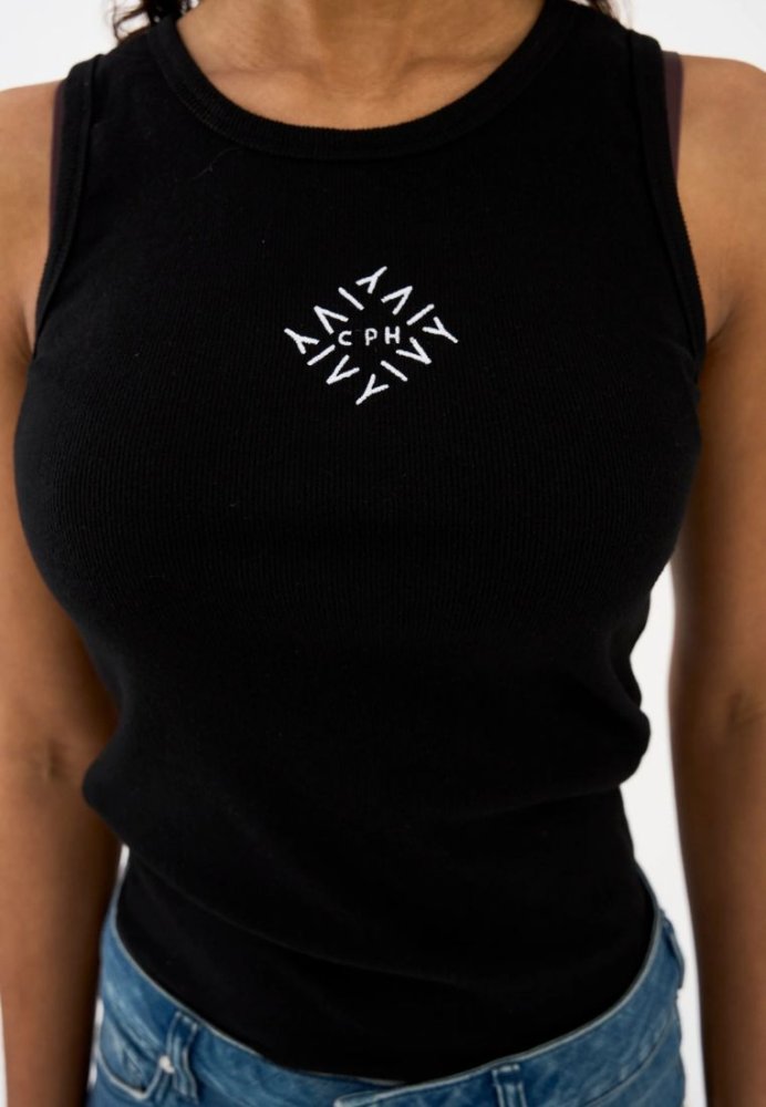 Rita tank top er en enkel og stilren basisstyle med et let sporty udtryk. Den runde halsudskæring og den diskrete logodetalje foran giver et moderne og minimalistisk look.Den bløde bomuldskvalitet føles behagelig mod huden og sikrer god komfort hele dagen. Den tætsiddende pasform gør toppen nem at style ? brug den alene på varme dage eller som et lag under skjorter og blazere for et cool, lag-på-lag look.