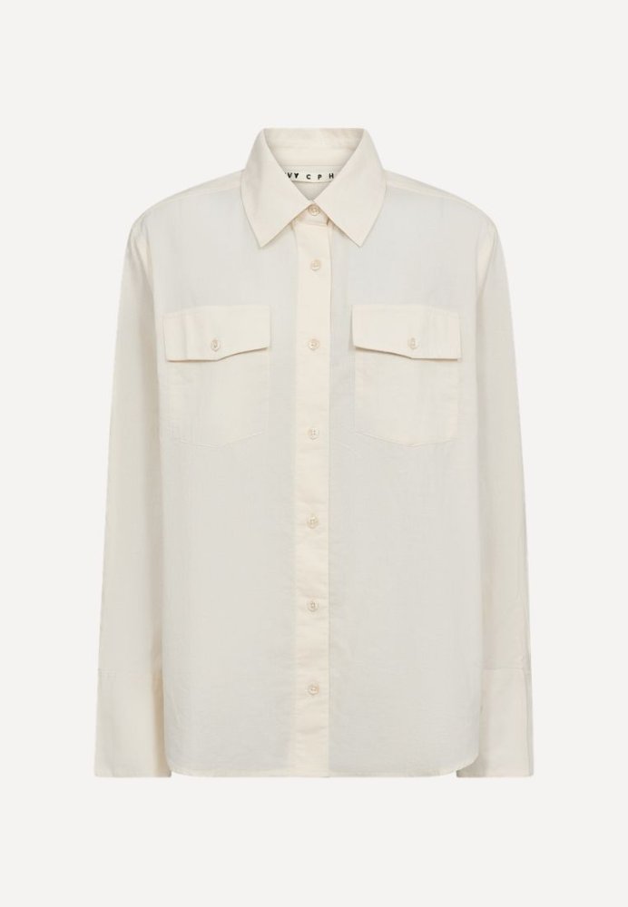 Klassisk skjorte med et rent og sofistikeret udtryk. Designet med krave, knaplukning og brystlommer, der giver et let workwear-inspireret look. Den løse pasform gør den behagelig at have på og nem at style både til hverdag og mere formelle anledninger.