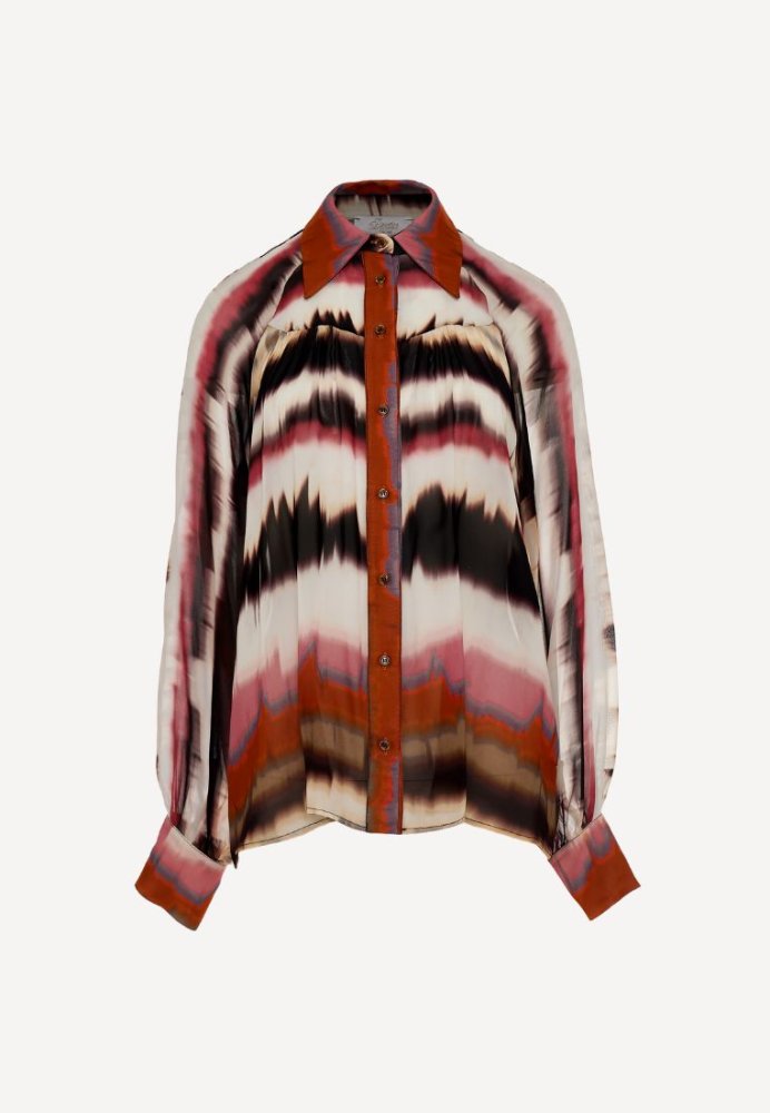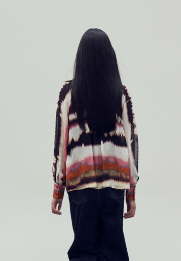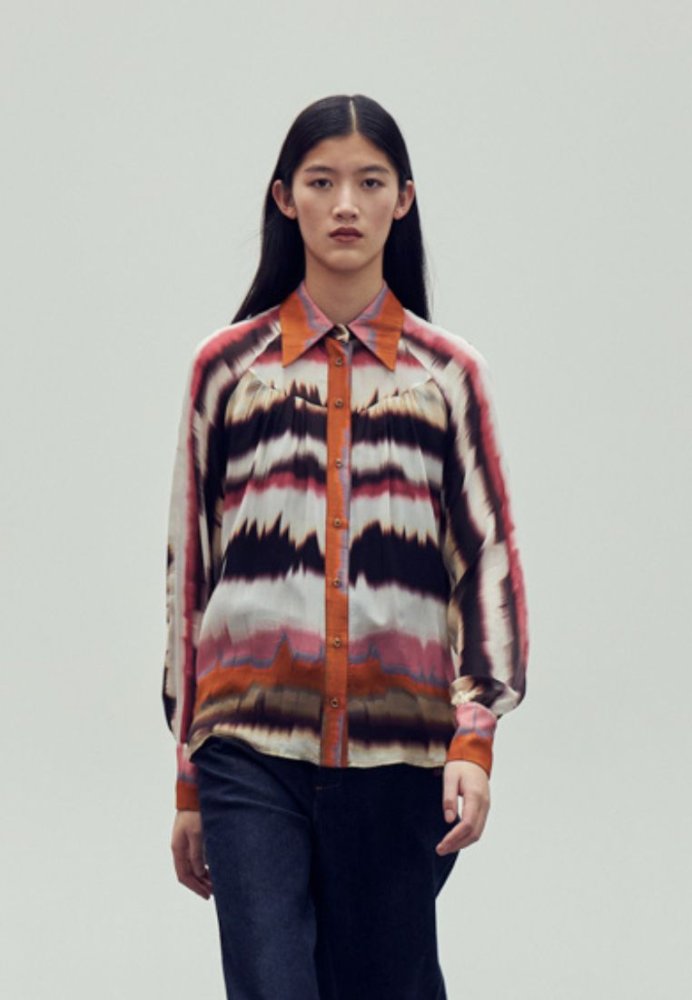 Smuk skjorte i multifarvet Butterfly Pea-print fra Devotion Twins med loose fit, knaplukning foran og klassisk krave – passer perfekt til både jeans og lag-på-lag.