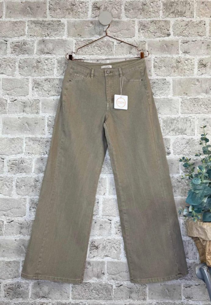 Julietta er et par stilrene jeans i lys beige denim med en moderne og velsiddende pasform. Den bløde denimkvalitet med elastan giver ekstra komfort og fleksibilitet, mens det enkle design gør bukserne nemme at style til både hverdag og mere elegante looks.