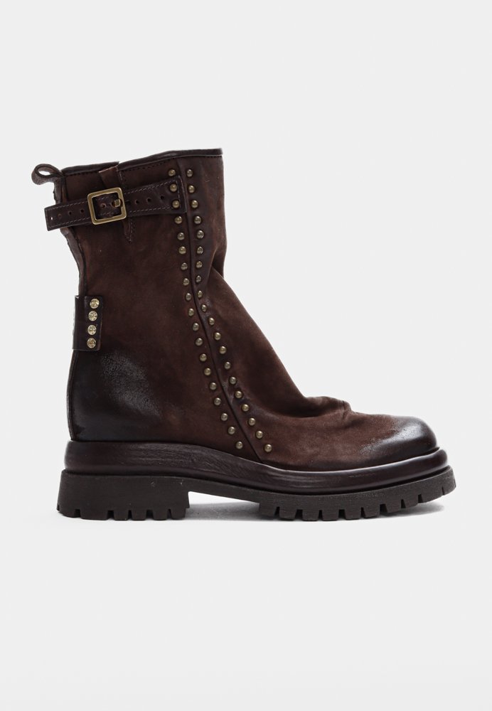 Disse støvler fra A.S. 98 kombinerer klassisk combat-stil med et raffineret twist. Nitterne langs siderne giver et diskret blikfang, mens den indvendige lynlås og den justerbare rem sikrer både komfort og perfekt pasform. Resultatet er en alsidig støvle, der tilføjer kant og stil til ethvert outfit.