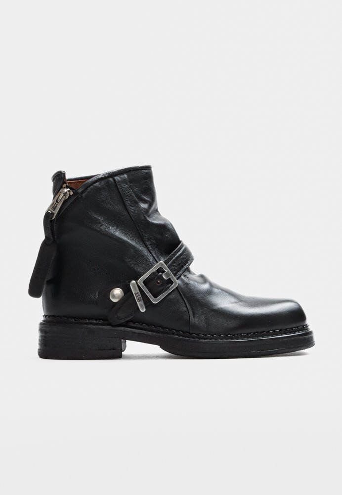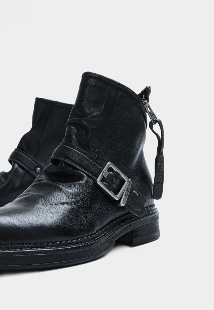 Cool støvler fra A.S. 98, der kombinerer klassisk combat-stil med et raffineret twist. Spænde-detalje langs siderne giver et fedt blikfang, mens den indvendige lynlås rem sikrer både komfort og perfekt pasform. Resultatet er en alsidig støvle, der tilføjer kant og stil til ethvert outfit.