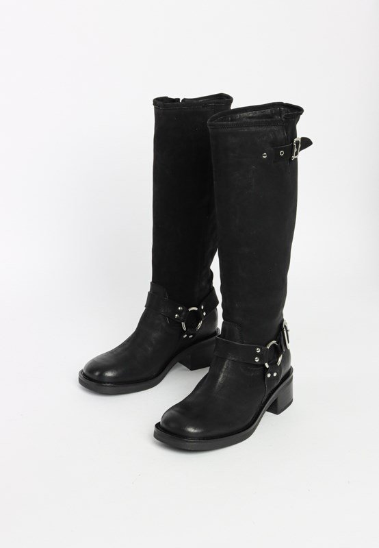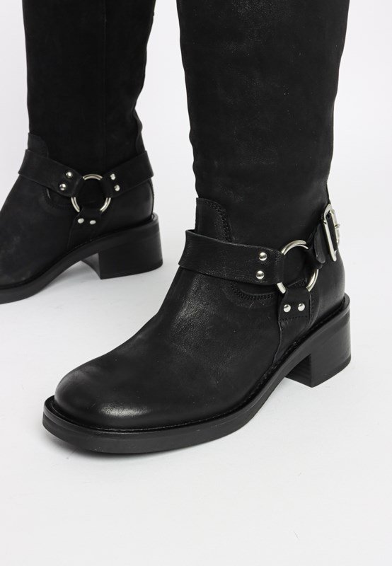 Træd ind i den spændende verden af biker-inspireret stil med Bukelas klassiker - en støvle, der bringer en utrolig cool attitude til din garderobe. Denne støvle er mere end bare fodtøj; den er en erklæring, et symbol på både eventyr og rå elegance. Så cool og edgy.
