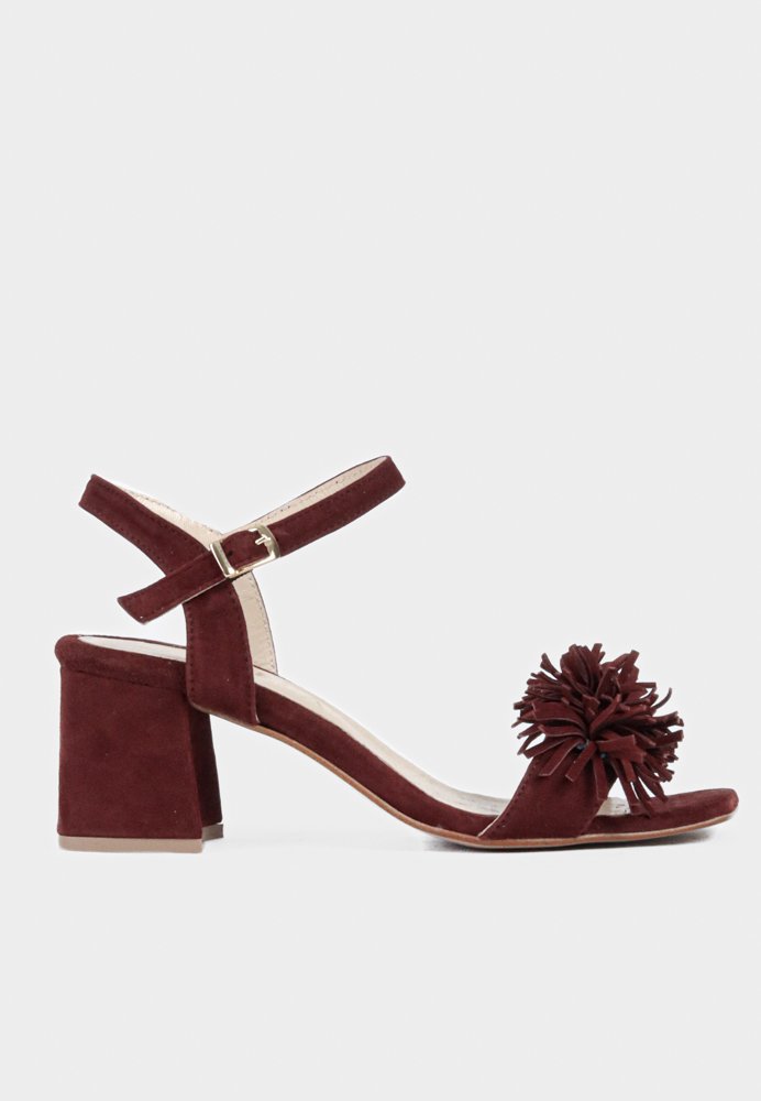 Mila er en høj sandal fra Bukela, som forener elegance og komfort på smukkeste vis. Sandalen er lavet i blødt ruskind og har en hæl på 5,5 cm, der giver både højde og et sofistikeret udtryk. Over foden prydes designet af en dekorativ bånddetalje med fine frynser, som tilfører et feminint og moderne touch. En justerbar ankelrem med et elegant guldspænde sikrer en god pasform og fuldender det eksklusive look. Mila er perfekt til både sommerens fester og hverdagsbrug med lidt ekstra kant.