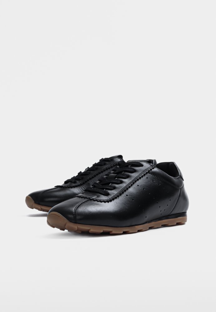 Stella er en stilren og tidløs sko, udført i blødt italiensk kalveskind. Den klassiske sorte farve gør modellen nem at style til både hverdag og mere elegante anledninger. Den er foret med skind, hvilket giver en behagelig pasform, mens en slidstærk gummisål sikrer god komfort og holdbarhed.