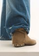 Jole støvlen i farven sand er en elegant og tidløs model udført i italiensk ruskind. Den lyse sandfarve giver et let og eksklusivt udtryk, som passer perfekt til sommerens lyse garderobe og naturlige nuancer. Støvlen er foret med læder for god komfort og har en smidig lædersål, der giver en behagelig og naturlig fornemmelse under foden. Et stilrent valg til dig, der ønsker en luksuriøs sandal med fokus på materialer og enkelt design.