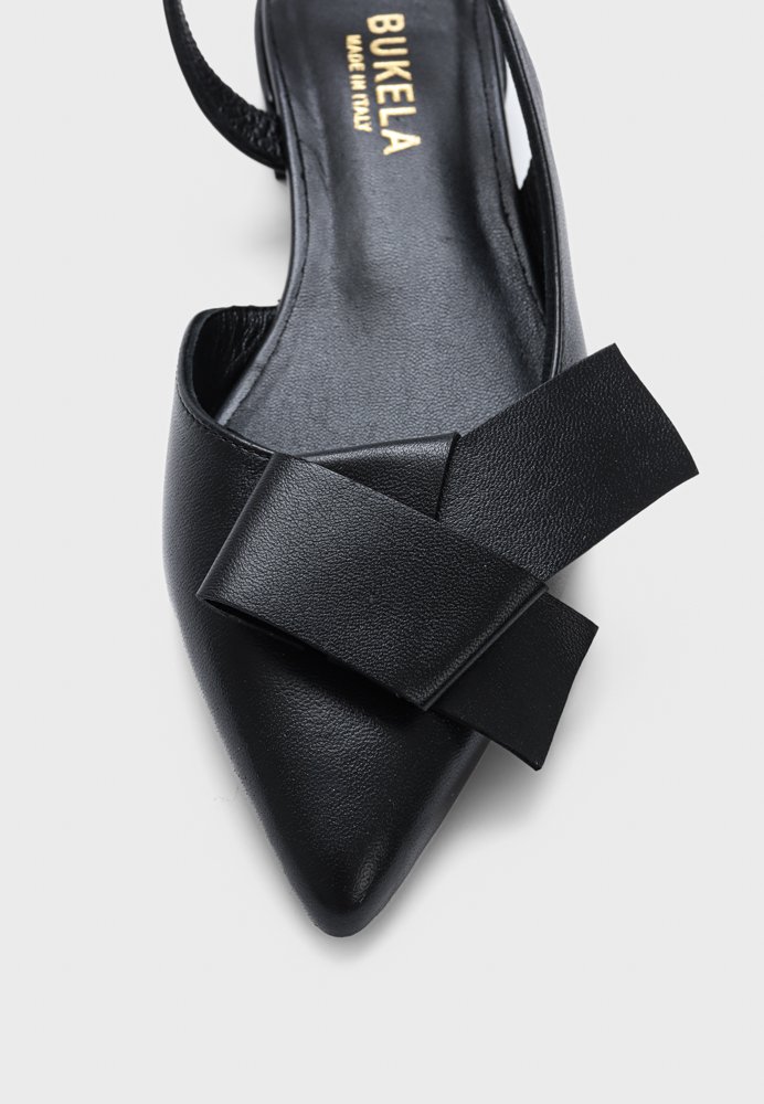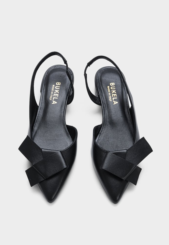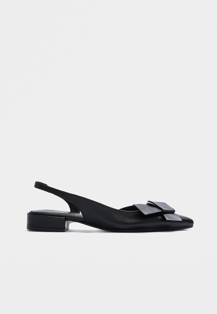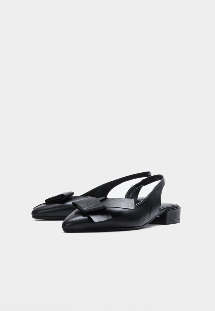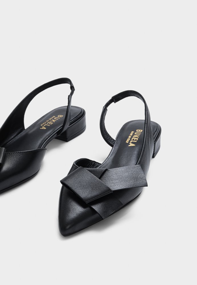 Elegant slingback med en feminin sløjfedetalje, der tilfører et eksklusivt udtryk. Den lave hæl sikrer komfort, mens den åbne hæl og enkle form gør modellen let og stilfuld til både hverdag og fest.