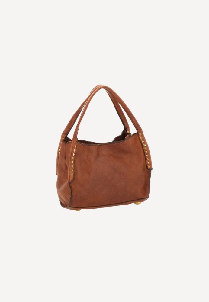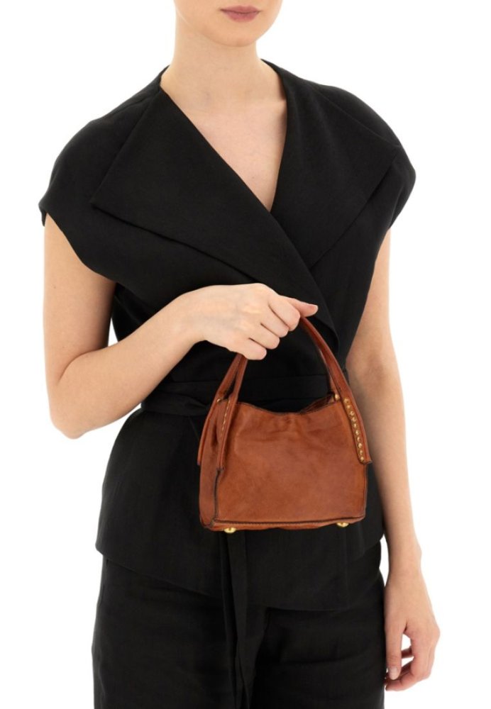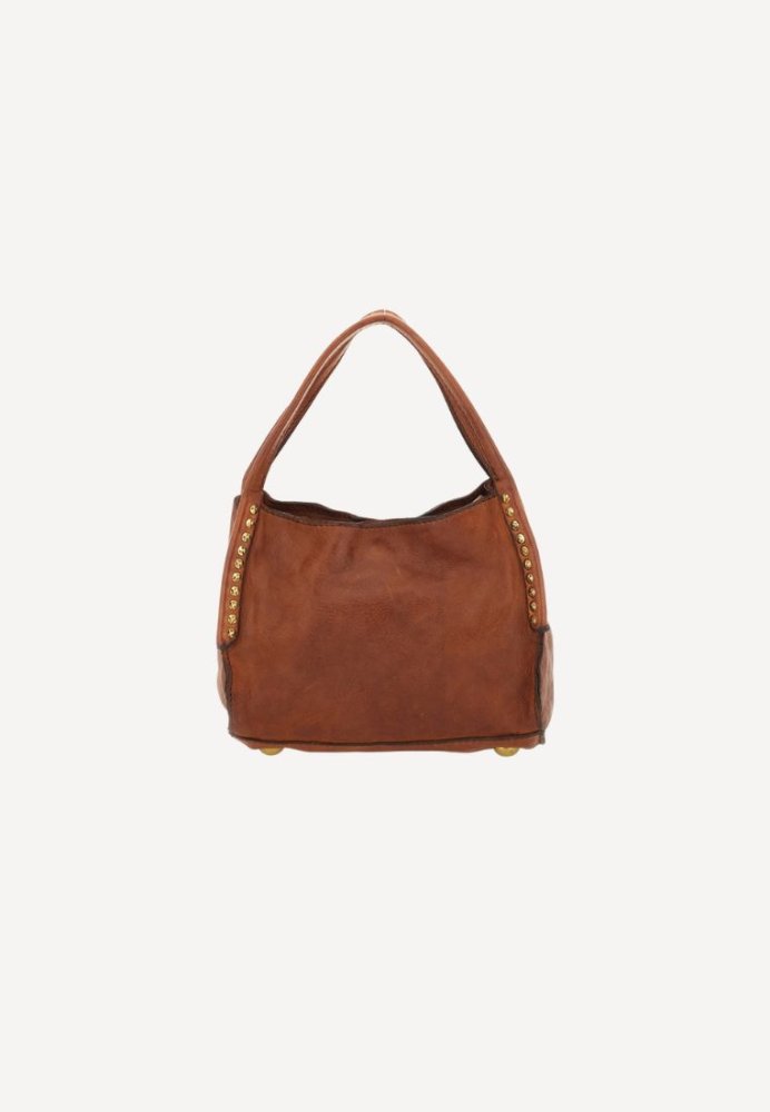 Elegant håndlavet lædertaske fra Campomaggi, produceret i Italien. Tasken har en klassisk og struktureret form med trykknaplukning og to faste hanke. Den er fremstillet i 100% læder med for i bomuld og læder. Den kompakte størrelse gør den ideel til både hverdagsbrug og særlige anledninger. Leveres med stofpose og plejesæt i cremefarve. En stilfuld taske med lang holdbarhed og eksklusiv finish.