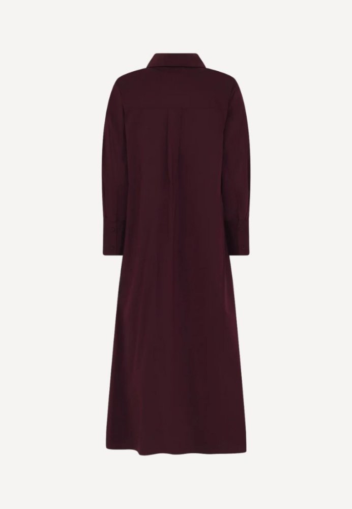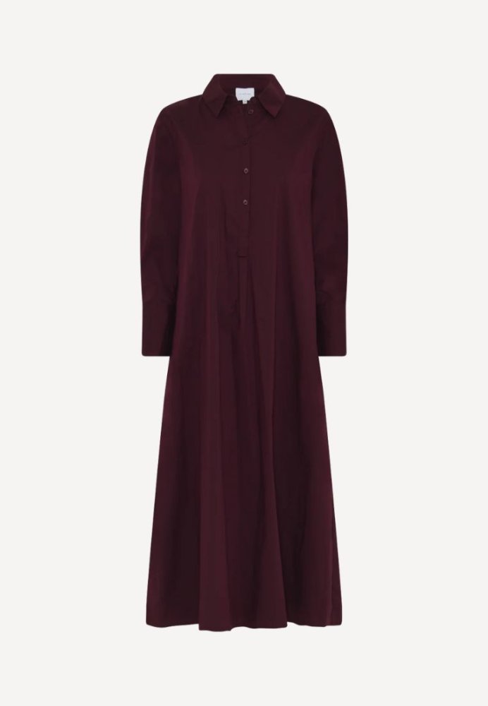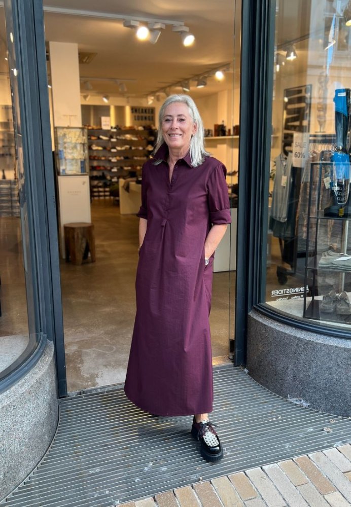 Kamilla-kjolen fra danske La Rouge er en elegant skjortekjole i en smuk vinrød farve. Den er lavet i en blød, strækbar bomuldsblanding, der både føles luksuriøs og er nem at holde. Perfekt til både hverdagsbrug og mere formelle anledninger.