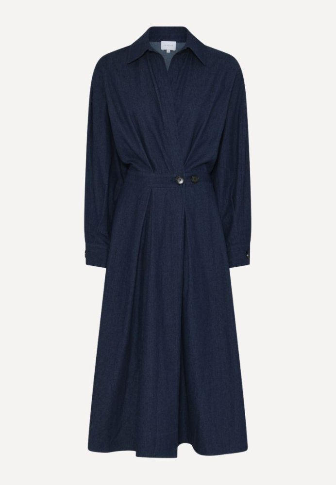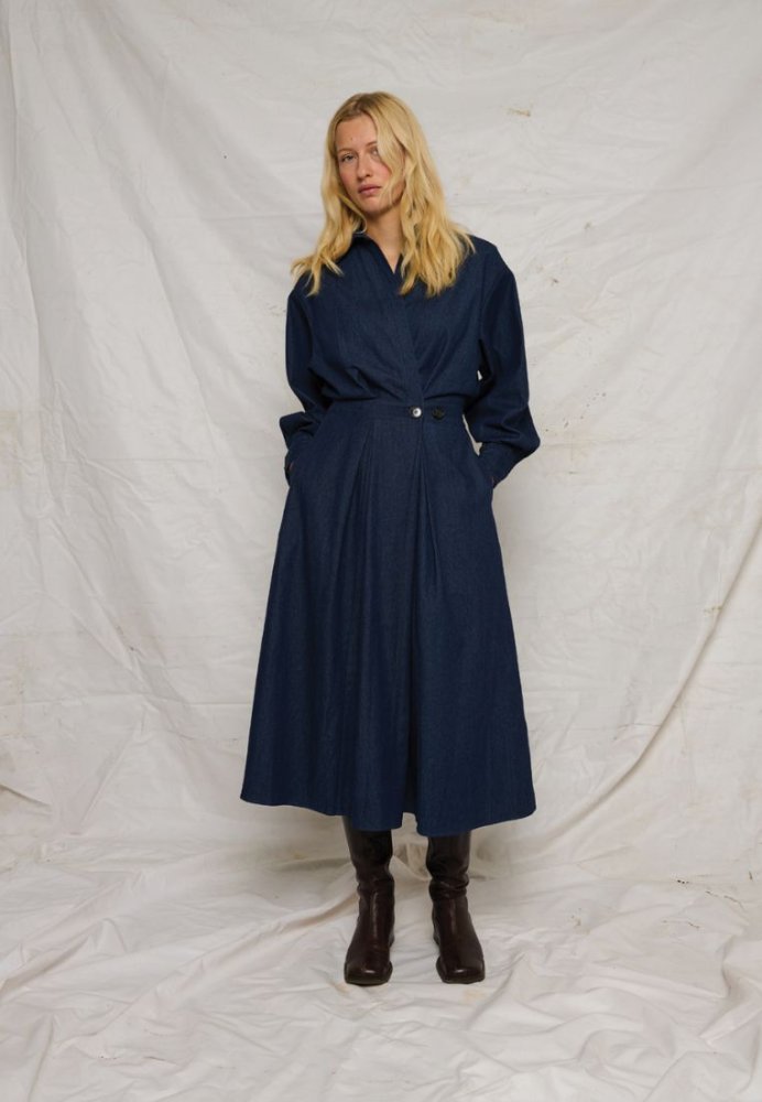 Charlotte Dress fra La Rouge er en moderne denimkjole i en mørk og klassisk vask, der giver et råt men sofistikeret udtryk. Kjolen er lavet i en blød bomuldsblanding med en smule stretch, hvilket gør den både behagelig og flatterende at have på. Den markerede talje og gennemknappede front giver mulighed for at tilpasse looket efter anledning. Bær den alene med støvler for et cool hverdagslook, eller style den med strømpebukser og en blazer for et mere poleret outfit.