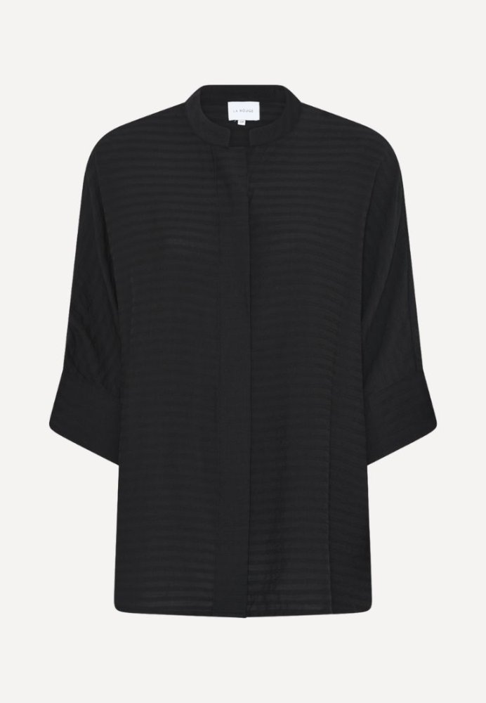 Sofie Blouse fra La Rouge er en klassisk og tidløs sort bluse, der kombinerer komfort og elegance på smukkeste vis. Den er fremstillet i en let og blød viskoseblanding, som falder pænt og føles behagelig mod huden. De diskrete detaljer og det enkle snit gør den nem at style til både hverdag og mere formelle lejligheder. Brug den til jeans og sneakers for et afslappet look, eller style den med habitbukser og smykker for en elegant aftenstil.