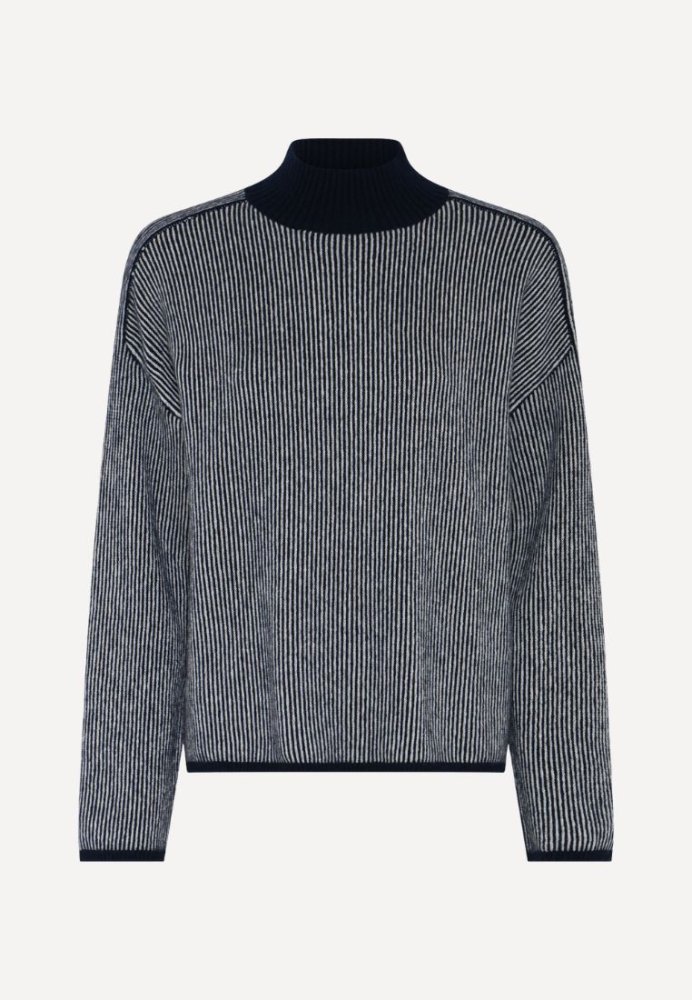 Sisse Stripe Knit fra La Rouge er en lækker og blød strik i en klassisk navy/offwhite strib. Den er strikket i en eksklusiv blanding af ultrafin uld og yak, hvilket giver en let, varm og utrolig behagelig kvalitet. Det maritime udtryk kombineret med det afslappede fit gør den til en sikker favorit i efterårs- og vintergarderoben. Style den med jeans og støvler til hverdagsbrug, eller bær den over en skjorte for et mere preppy udtryk.