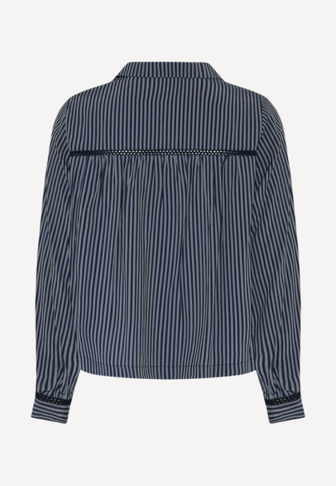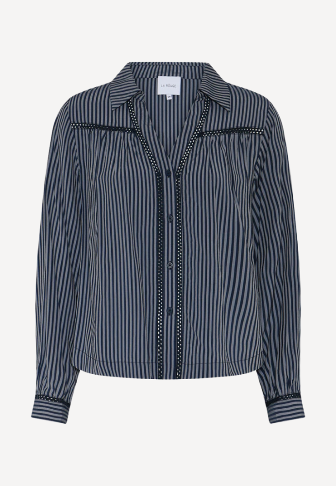Cecilie-blusen fra La Rouge er en elegant og feminin bluse med en flatterende V-udskæring. Den mørkeblå nuance gør den både klassisk og nem at kombinere med resten af garderoben. Blusen er fremstillet i en let og blød kvalitet, som føles behagelig mod huden og giver et flot fald.