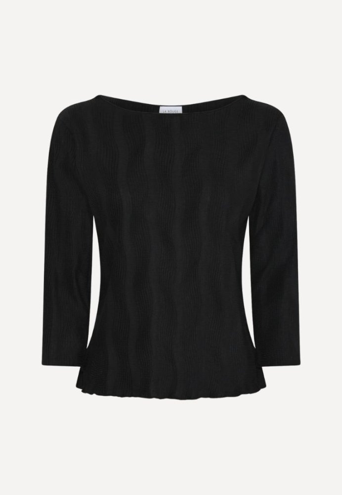 Luna-blusen med 3/4-ærmer fra La Rouge er en smuk og feminin bluse.  Den har en elegant bådudskæring, som giver et sofistikeret og flydende udtryk. Blusen er lavet i en blød og let kvalitet, der falder flatterende om kroppen – perfekt både til hverdagsbrug og festlige lejligheder.