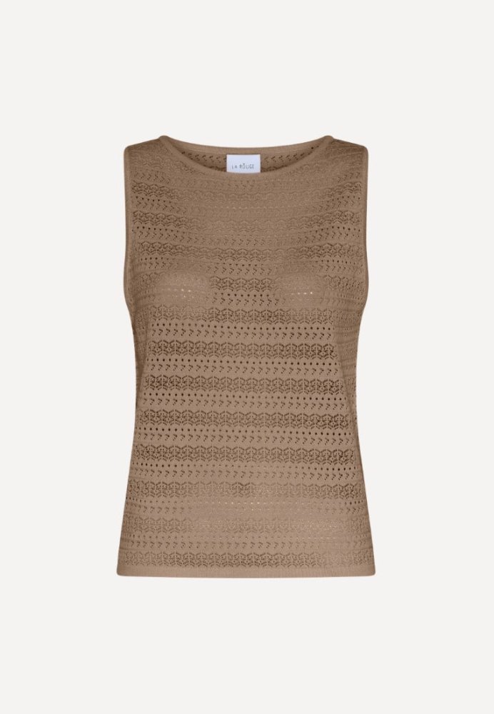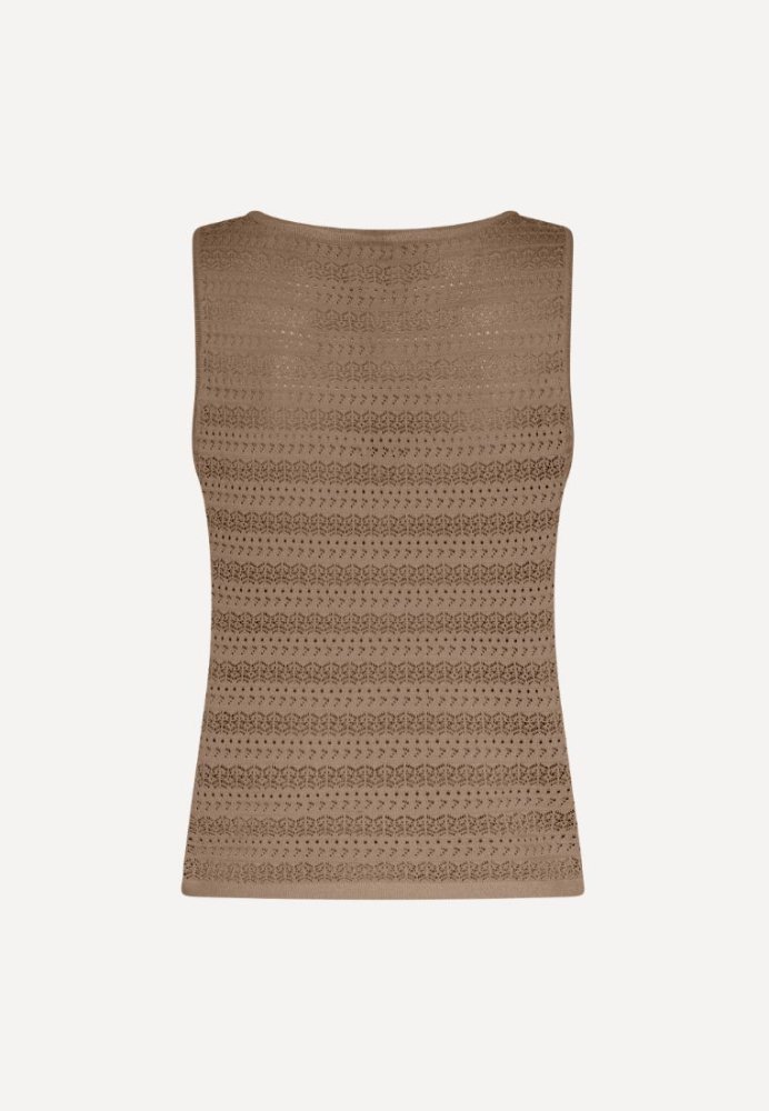 Alma Knit top i sand giver et blødt, naturligt udtryk og er perfekt til forårs- og sommergarderoben. Den lette strik gør toppen åndbar og skøn at have på hele dagen.