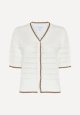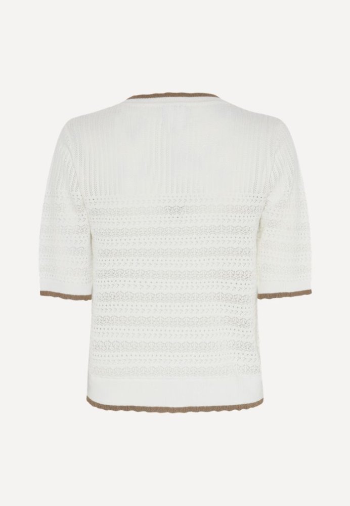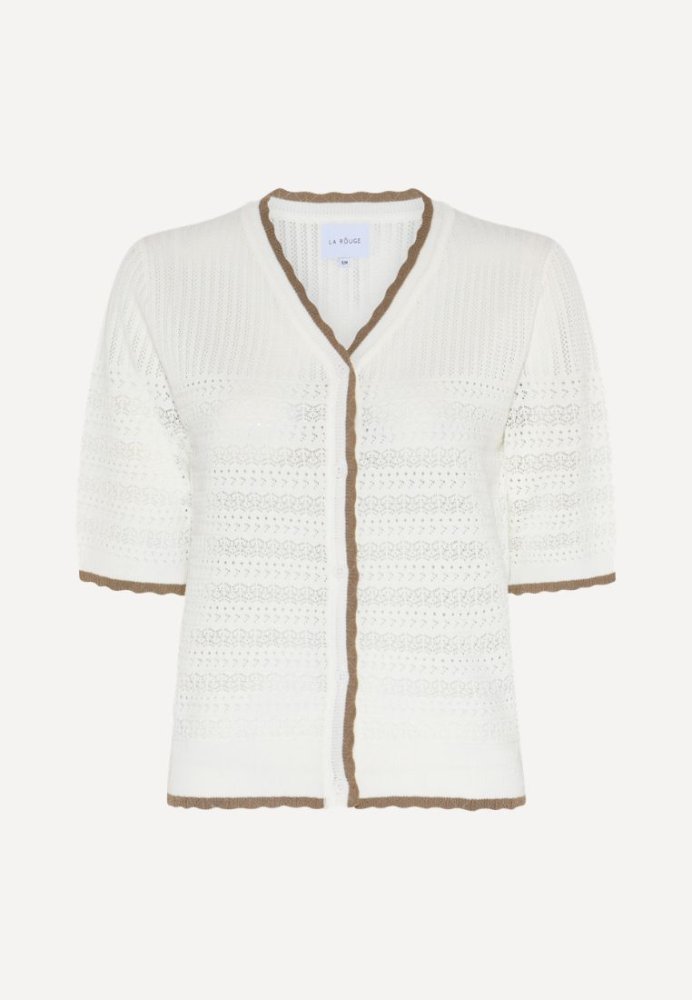 Alma cardigan er en kortærmet cardigan i en blød og let viskosekvalitet, der giver et elegant, feminint fald. Off-white-varianten har et tidløst og lyst udtryk, der passer perfekt til både sommerens lyse looks og klassiske basisstyles. En alsidig og feminin cardigan, der let kan styles med både nederdele, bukser og kjoler.