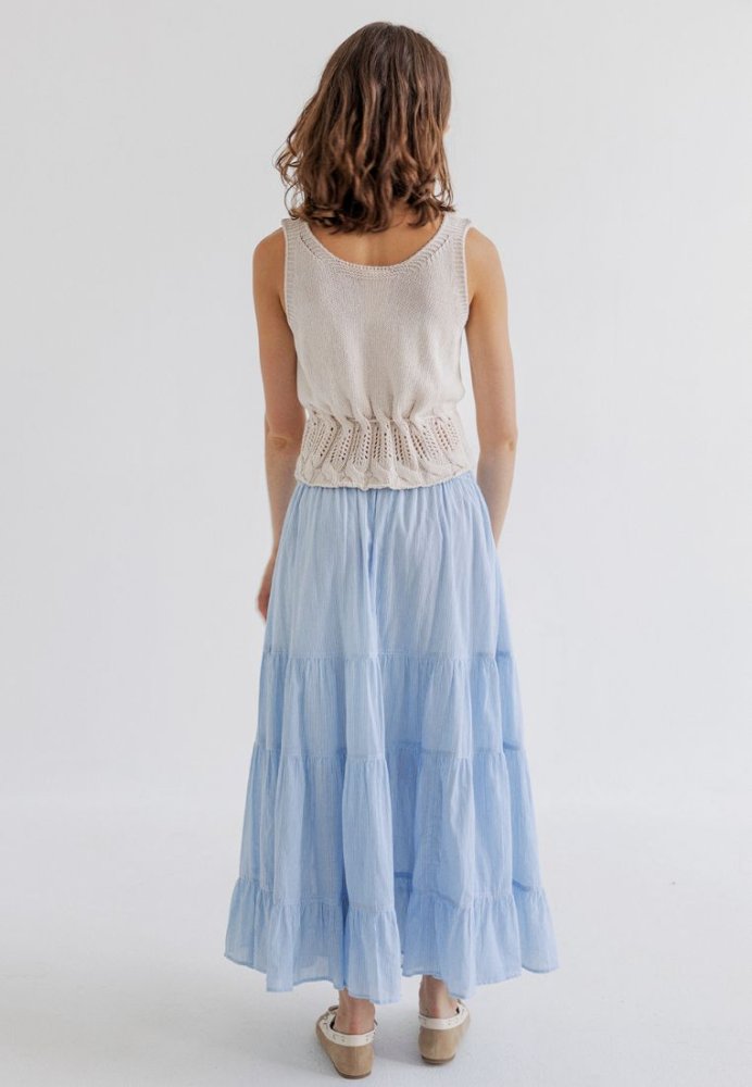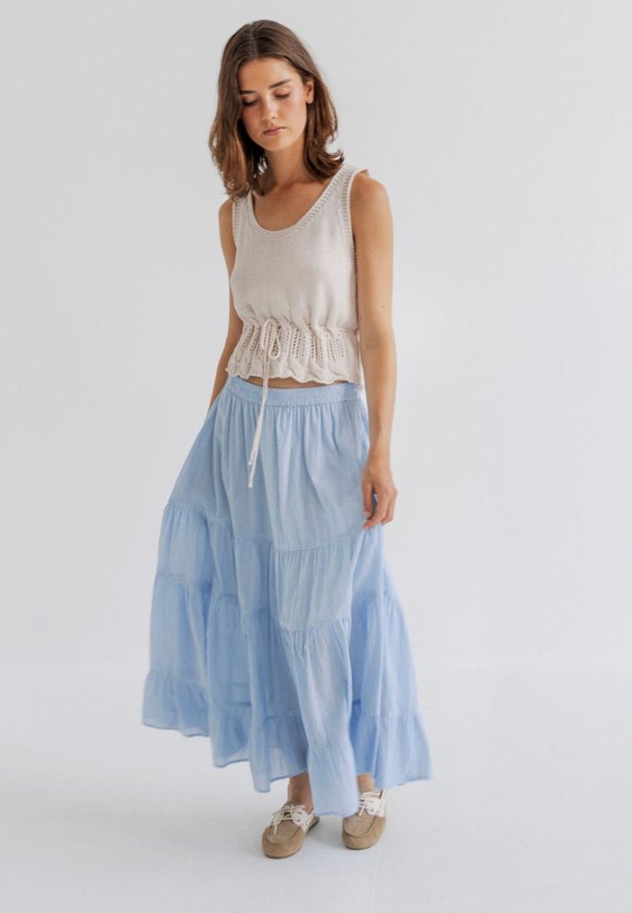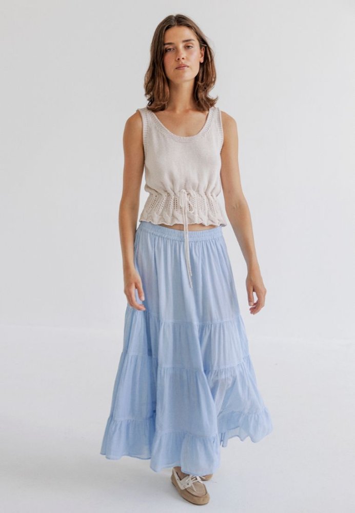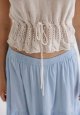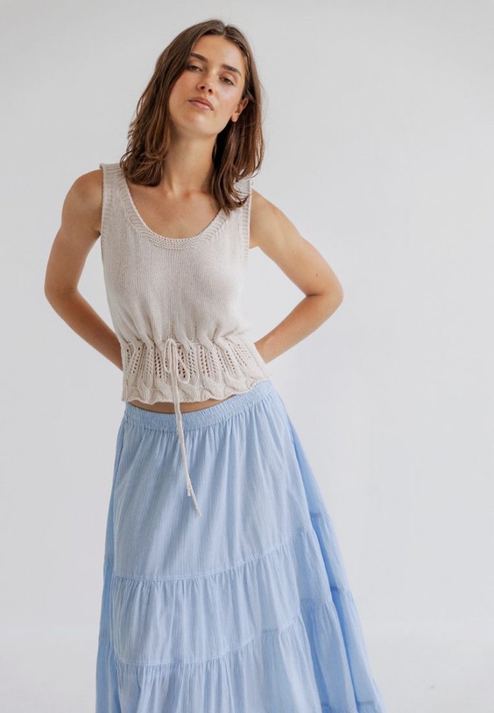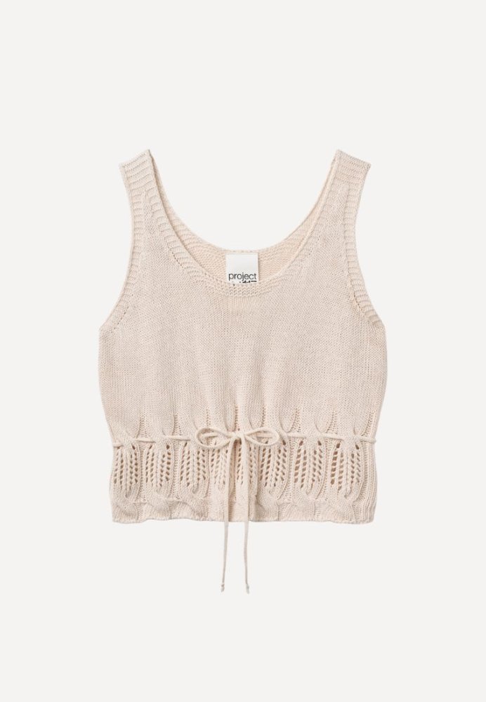 Top fra Project AJ117 strikket i en blød blanding af 50% ecotec bomuld og 50% akryl. Det lette, strukturerede design og den justerbare snøre i taljen giver et feminint og afslappet look. Perfekt til varme dage eller stylet under en blazer.