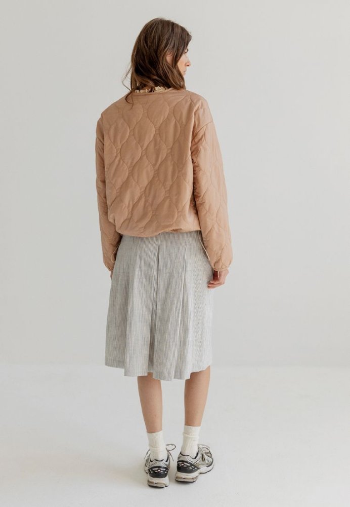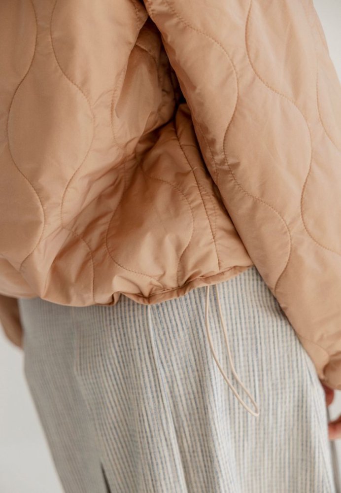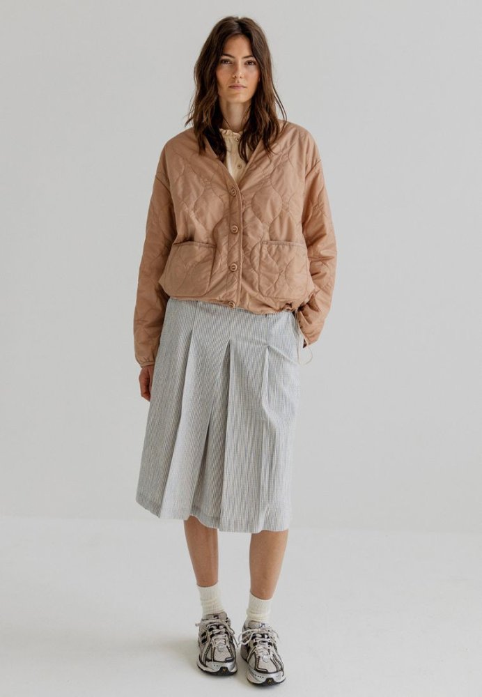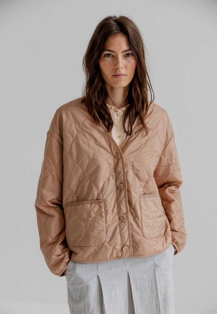 Quiltet jakke fra Project AJ117 i 100% nylon med et let og moderne udtryk. Den bløde pasform, store lommer og knaplukning gør den både praktisk og stilfuld. En perfekt overgangsjakke, der tilføjer et cool touch til hverdagslooket.