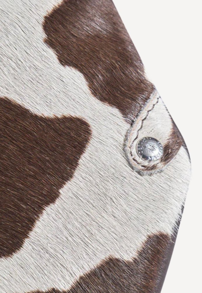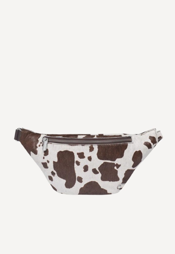 Denne luksuriøse bumbag i 100% kalveskind med ko-print kombinerer elegance og praktisk design. Med sit enkle og tidløse look passer den perfekt til enhver garderobe. Tasken har et rummeligt hovedrum med plads til mobil, pung og andre nødvendigheder samt en lille lynlåslomme til småting. Den lukkes sikkert med lynlås i toppen, og den justerbare crossbodyrem sikrer optimal komfort – uanset om du bærer den over skulderen eller på tværs af kroppen.