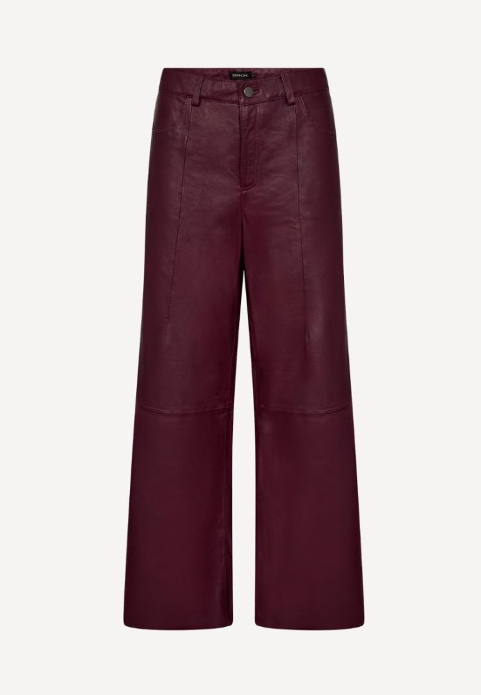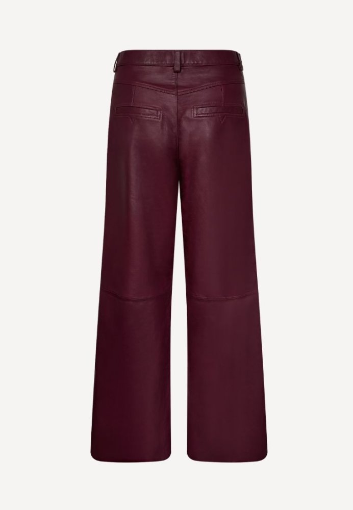BoaDE er højtaljede læderbukser i regular fit med brede ben, lavet af blødt og slidstærkt lammeskind. Den høje talje og de brede ben skaber en elegant silhuet, mens praktiske lommer og diskret lukning sikrer komfort hele dagen. Tidløse og alsidige, perfekte til både casual og elegante outfits. OBS: Sidste billede er blot for at illustrere pasformen.