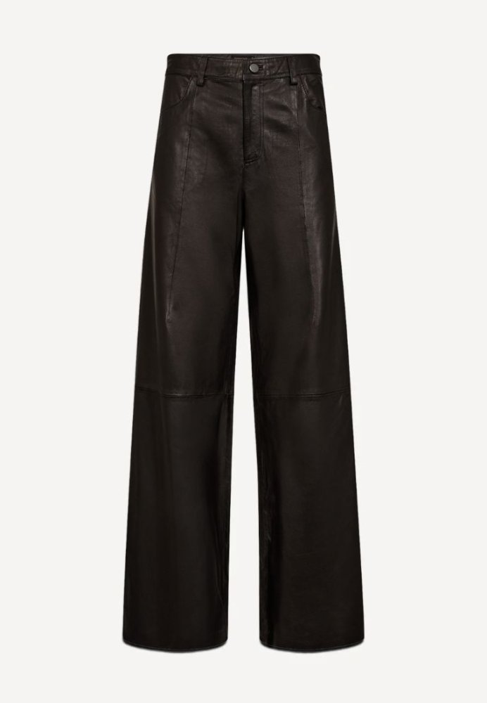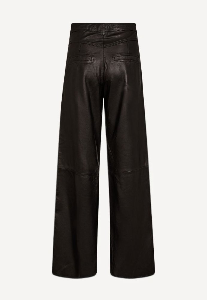 Boa Wide er et par højtaljede skindbukser med vidde i benene og almindelig pasform. De er fremstillet i blødt og slidstærkt lammeskind i høj kvalitet, som giver både komfort og et eksklusivt udtryk. Med deres flatterende snit og tidløse design er de perfekte til både hverdagsbrug og festlige lejligheder. Bukserne har praktiske lommer foran og bagpå samt en diskret knap- og lynlåslukning, der sikrer optimal pasform hele dagen. En stilfuld garderobeklassiker, der kombinerer elegance og rå attitude. OBS: Det sidste billede er ikke farven, det er blot for at illustrere farven.