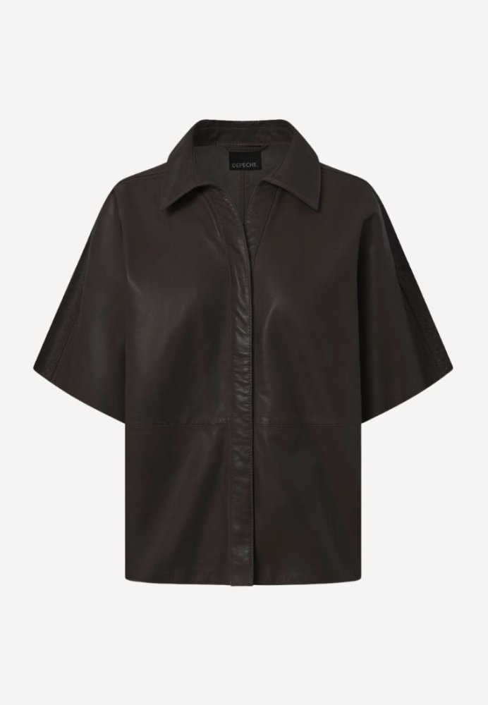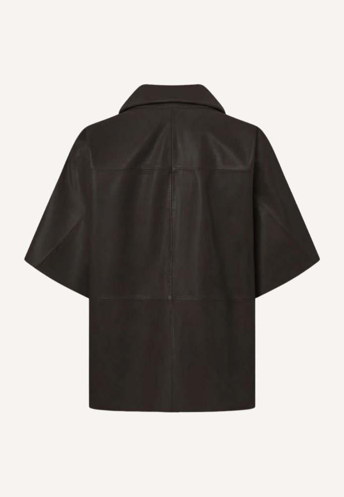Kortærmet læderskjorte i blødt og luksuriøst lammeskind med klassisk design, elegante stikninger og moderne detaljer som rå kanter og små slids i siderne.