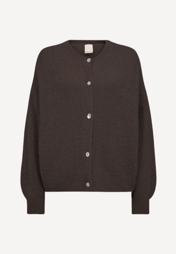 SarahDe Alpaca Cardigan er en luksuriøs og feminin cardigan, strikket i en eksklusiv blanding med 30% baby alpaca. Den har et tidløst design med perlemorsknapper og ballonærmer, som giver et elegant og raffineret udtryk. Perfekt både som let lag-på-lag eller lukket som top.