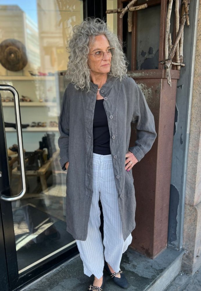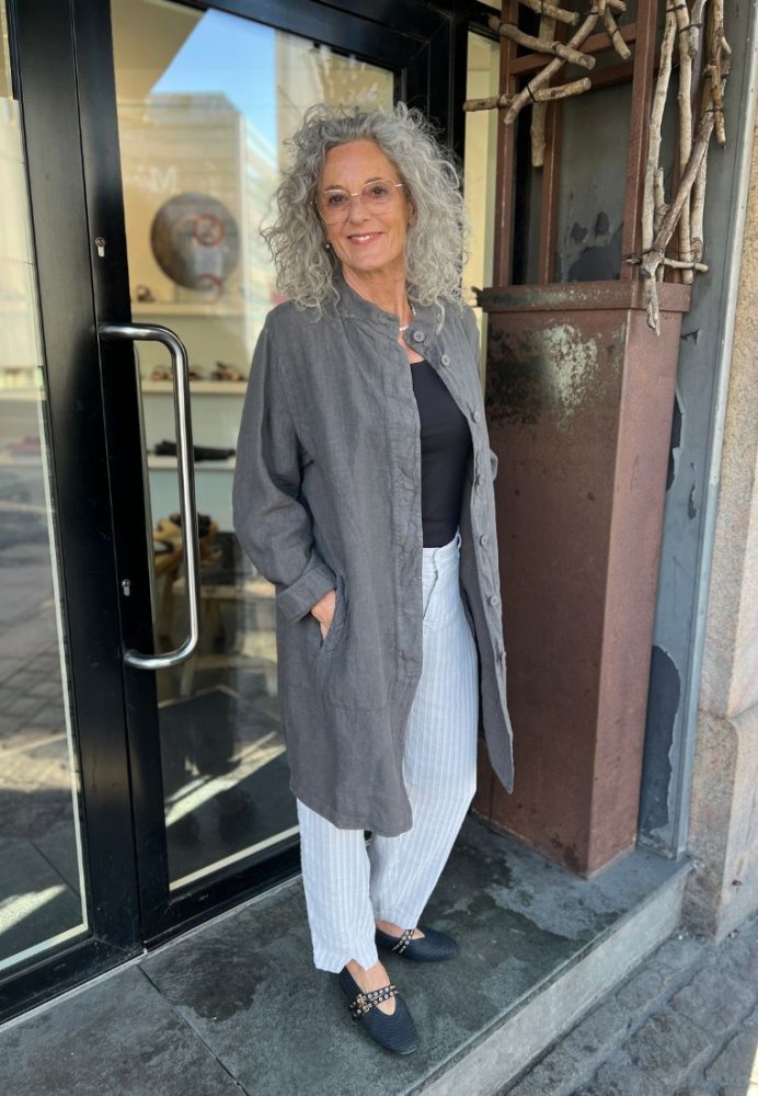 Skøn lang og let jakke fra italienske Transit. Jakken kan bruges under en frakke eller alene, alt efter årstiden. Et skønt materiale som er komfortabelt dagen lang.