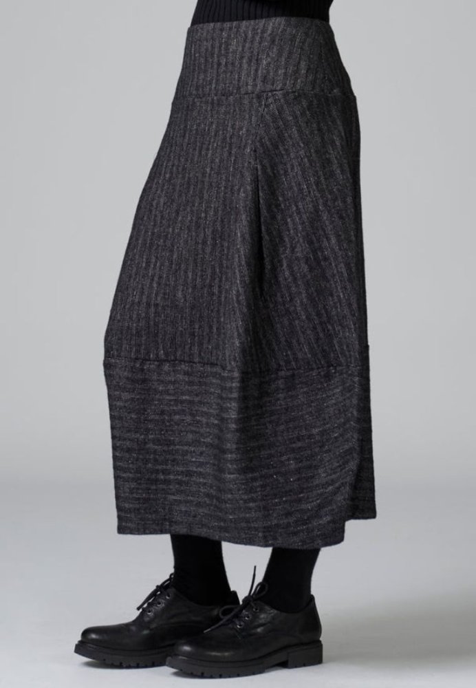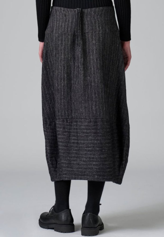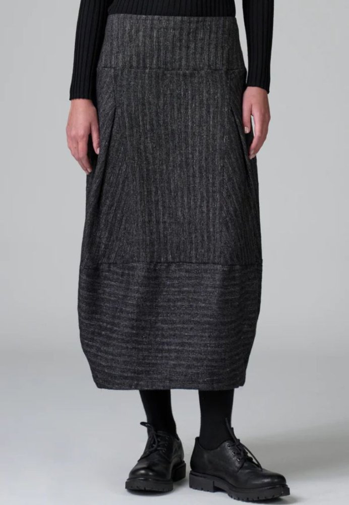 Comfort fit nederdel i sort med bombé form og herringbone mønster; foret og lavet i strækbar uldblanding for et smukt fald og maksimal komfort.