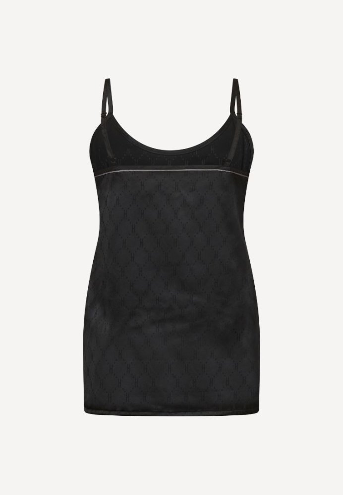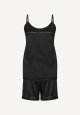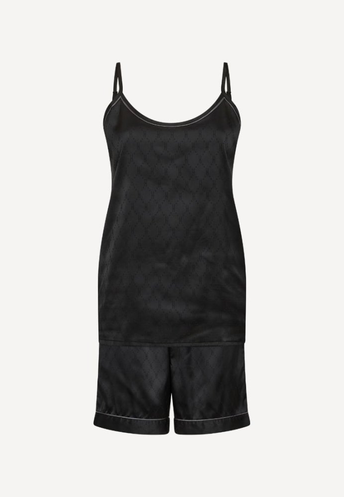 Det smukkeste nattøj fra Hype The Detail i sort med logoprint. Sættet inkluderer shorts med elastisk talje og bindebånd samt praktiske sidelommer. Den løstsiddende stroptop har justerbare stropper, så pasformen kan tilpasses. Sættet er lavet i en luksuriøs satinkvalitet, der giver et feminint og sofistikeret look. Et elegant sæt, der også fungerer perfekt som et afslappet hjemmesæt og er en oplagt gaveidé til en, du holder af.