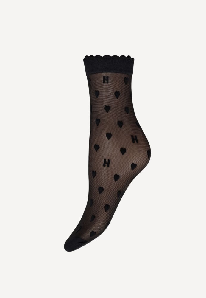 Let og lækker kort strømpe i sort med logo og hjerter på fra Hype The Detail.
