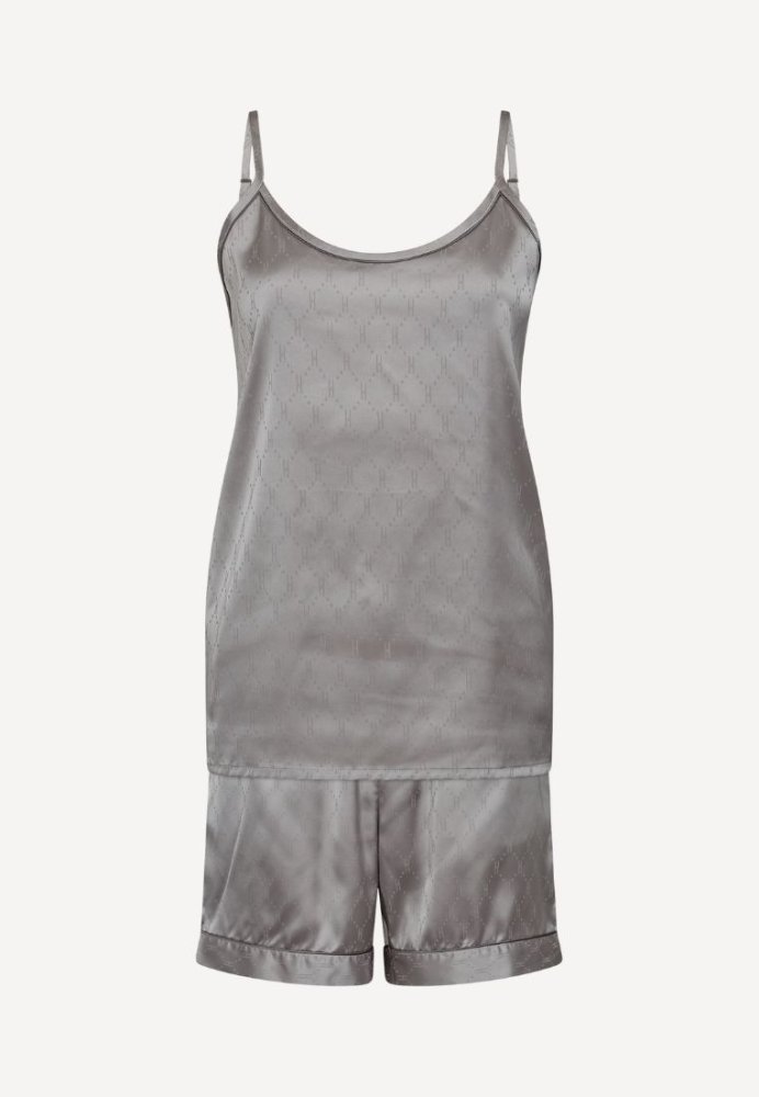 Et elegant satin short set fra Hype the Detail i en eksklusiv antracitgrå nuance. Sættet består af en blød top og matchende shorts med en glansfuld overflade, der giver et feminint og luksuriøst udtryk. Ideelt som loungewear eller nattøj, hvor komfort og stil går hånd i hånd.